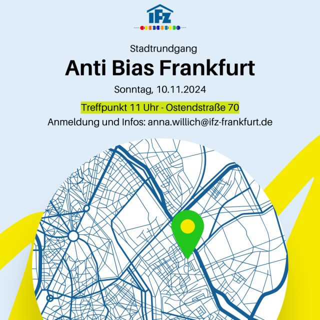 Wir laden Euch/Sie herzlich zu unserem Anti-Bias-Rundgang durch Frankfurt ein! Gemeinsam möchten wir uns auf eine Spurensuche begeben, die historische Verflechtungen der Stadt mit Rassismus, Kolonialismus und Antisemitismus aufzeigt und gleichzeitig den Bogen zur Gegenwart spannt.