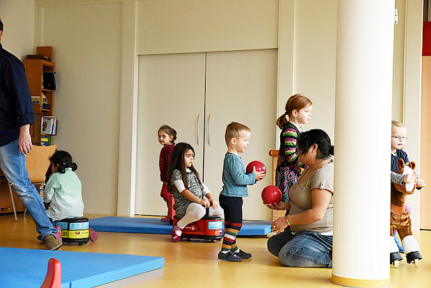 Musikalische Früherziehung und Bewegungserziehung sind die besonderen Schwerpunkte unserer pädagogischen Arbeit. Diese beiden Elemente sind täglicher Bestandteil des Tagesablaufs und dienen einer ganzheitlichen Entwicklungsförderung und -begleitung. Durch Singen, Tanzen, gezielte Bewegungsangebote und das Spielen von Instrumenten schulen die Kinder Körper- und Rhythmusgefühl, Konzentration, Sozialverhalten, Wahrnehmung, Koordination, Vertrauen und Zusammenhalt. Im Mai 2017 wurde die Kita daher auch vom hessischen Chorverband als „Carusos-Kita“ zertifiziert. Neben weiteren zahlreichen Angeboten wie Kinderyoga, Zirkusprojekt und Selbstbehauptungskurs findet wöchentlich ein offenes Beratungsangebot für Eltern statt.